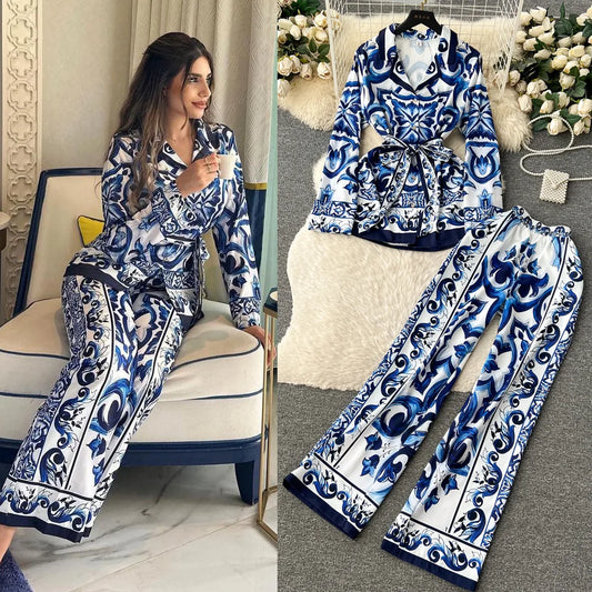 Set aus geblümtem Hemd und Hose mit weitem Bein
