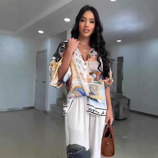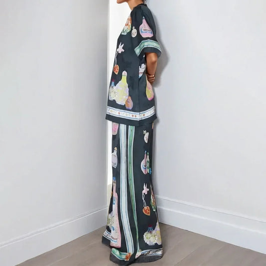 Set aus geblümtem Hemd und Hose mit weitem Bein