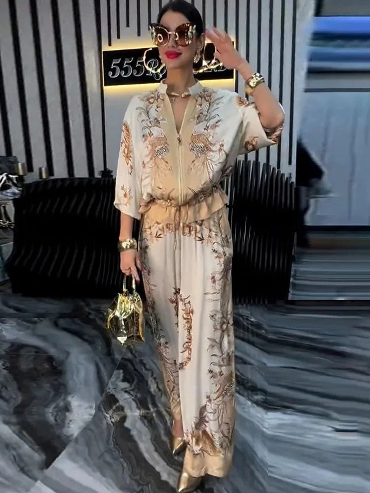 Definieren Sie Ihre Garderobe mit diesem sportlich-schicken Set neu. Die klassische Baseballjacken-Silhouette wird mit einem raffinierten Blumendruck neu interpretiert. Das Ganze ist aus weichem, atmungsaktivem Stoff gefertigt und bietet ganzjährigen Komfort.