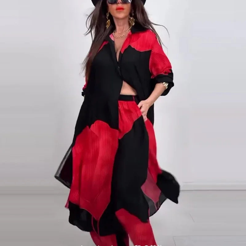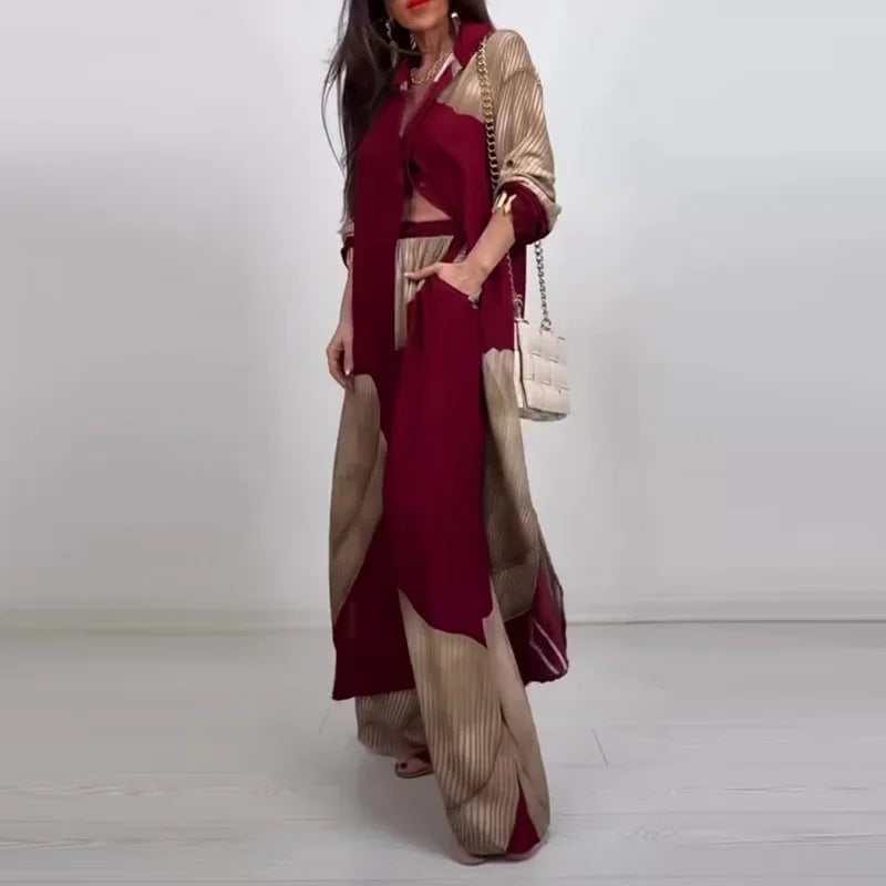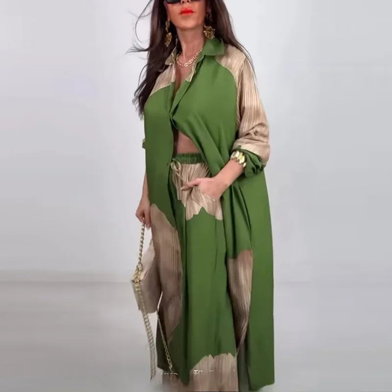 Stil: Zweiteiliges bedrucktes Hosenset für Bürodamen.