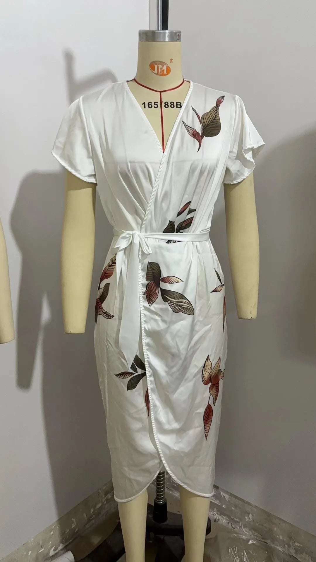 Erleben Sie raffinierte Eleganz mit unserem White Leaf Kurzarm-Satin-Wickel-Midikleid. Der luxuriöse, weiche Satinstoff und die schmeichelnde Wickel-Silhouette sorgen für ein wahrhaft edles Tragegefühl. Kurze Ärmel und die klassische Midilänge sorgen für einen schicken und zeitlosen Look, der in Ihrer Garderobe nicht fehlen darf.