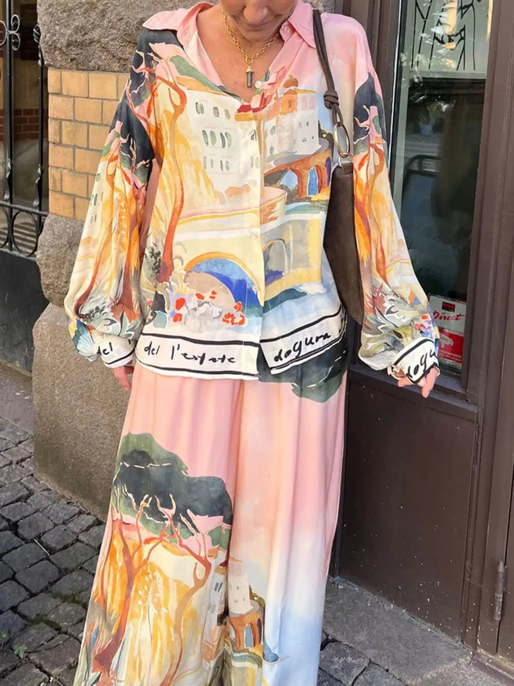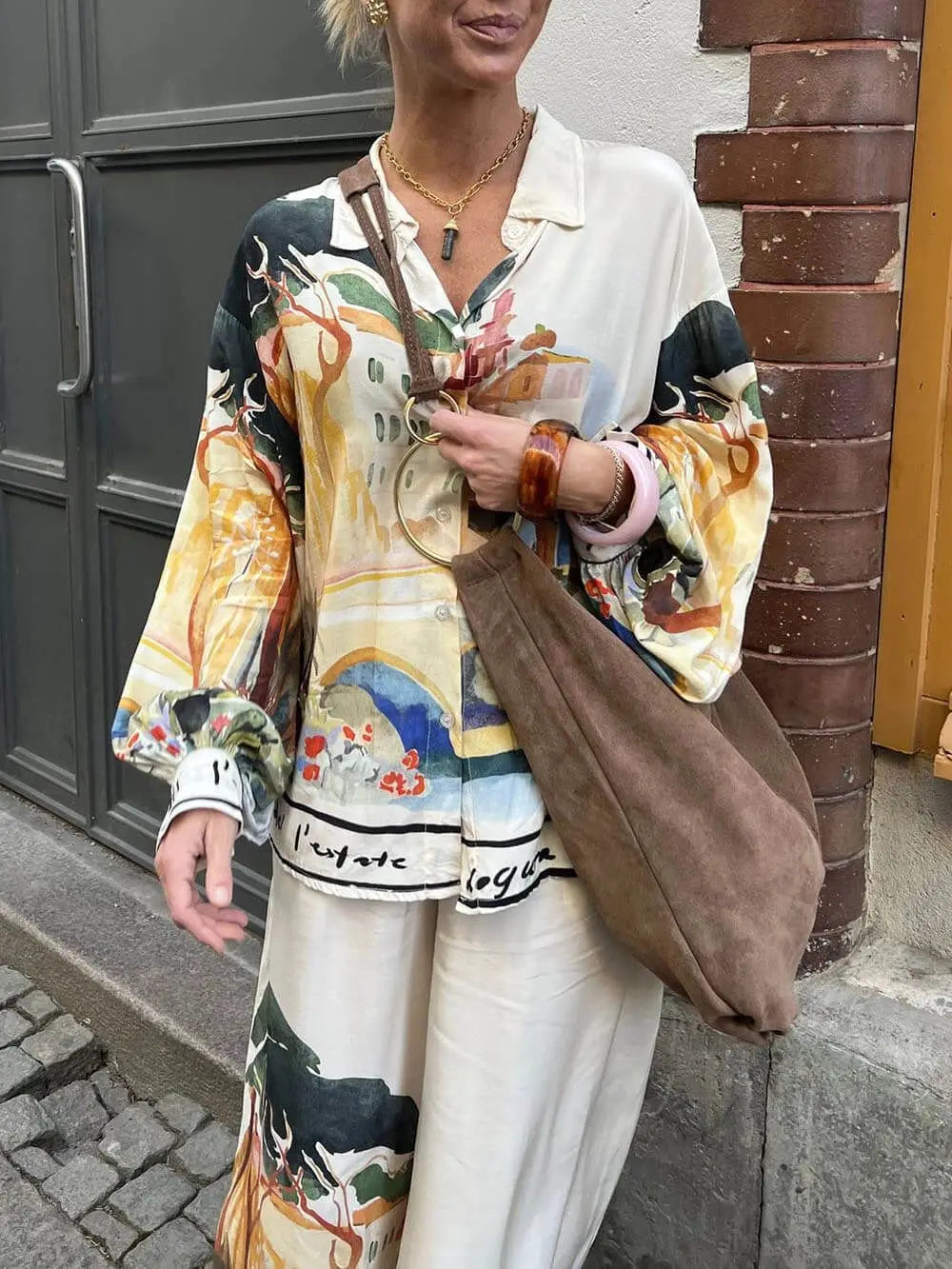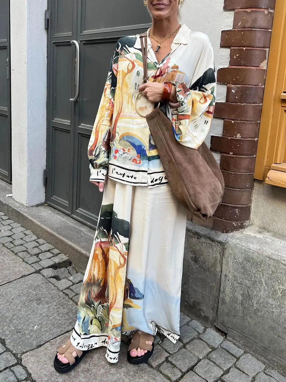 Entfliehen Sie mit diesem lockeren, übergroßen Zweiteiler in eine Welt, in der künstlerisches Design auf ultimativen Komfort trifft.