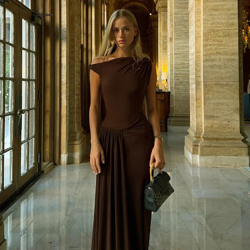 Mit diesem atemberaubenden Maxikleid strahlen Sie mühelose Verführung aus. Das „Sisal“ besticht durch eine wunderschön drapierte Silhouette in einem satten Espresso-Ton, die den Körper umspielt und für eine bequeme und dennoch dezent sexy Passform sorgt.