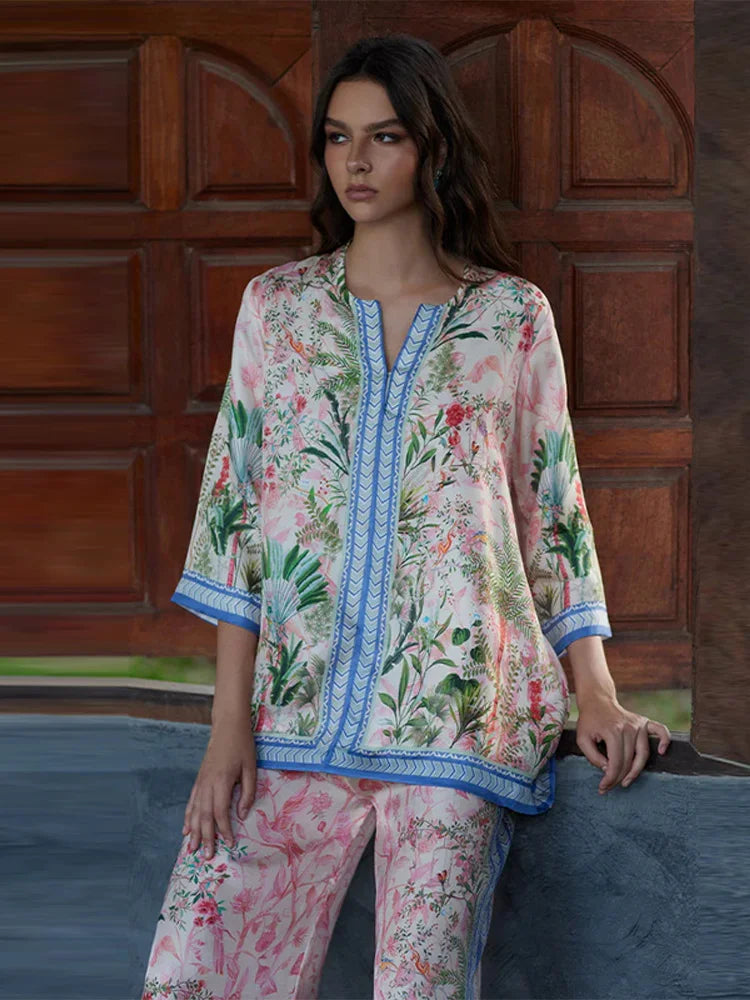 Entdecken Sie mit diesem zweiteiligen Set die perfekte Mischung aus herausragendem Stil und Alltagskomfort. Ein einzigartiger Digitaldruck unterstreicht die entspannte Silhouette aus hochwertigem, weichem und atmungsaktivem Stoff.