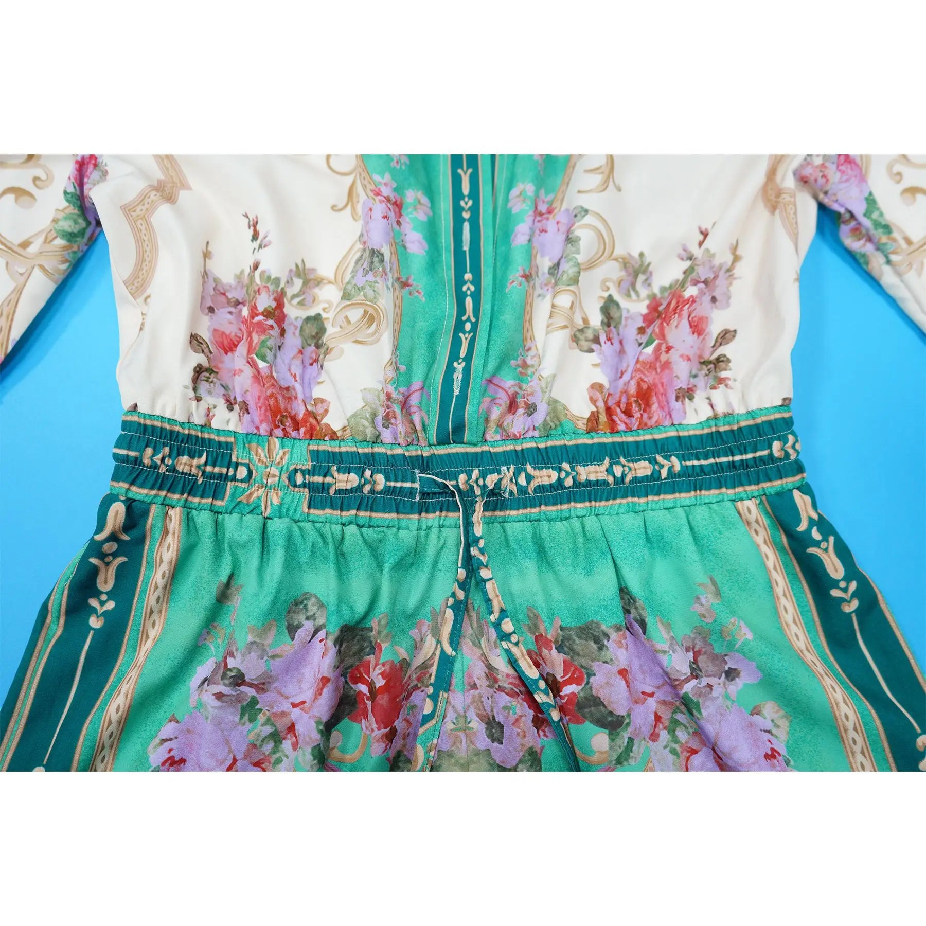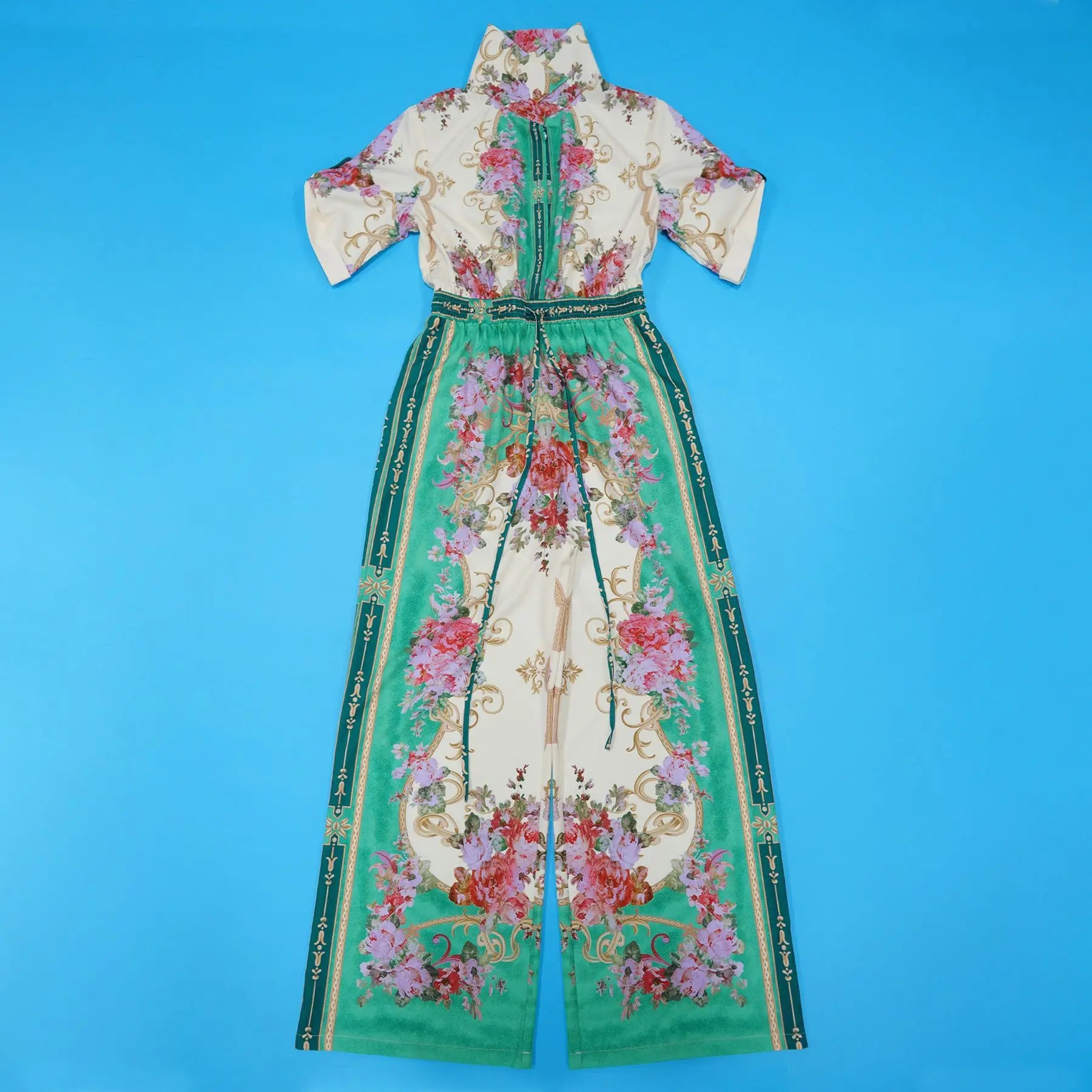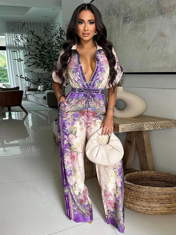 Gewagte Silhouette: Mit einem atemberaubenden tiefen Ausschnitt und einer ausgeprägten Taille, die in eine elegante Hose mit weitem Bein übergeht.