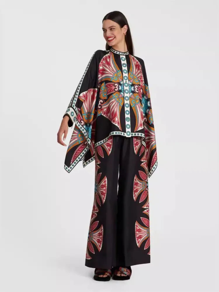 Dramatische Cape-Ärmel: Das Vorzeigeoberteil verfügt über geschwungene Ärmel, die bei jeder Bewegung eine atemberaubende, fließende Linie erzeugen.